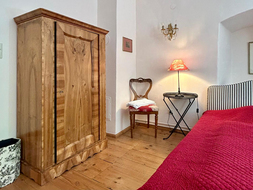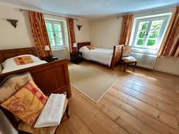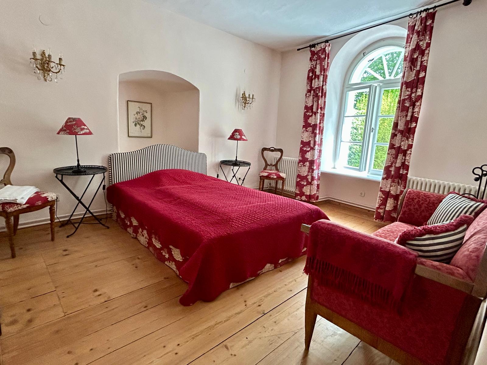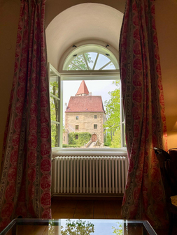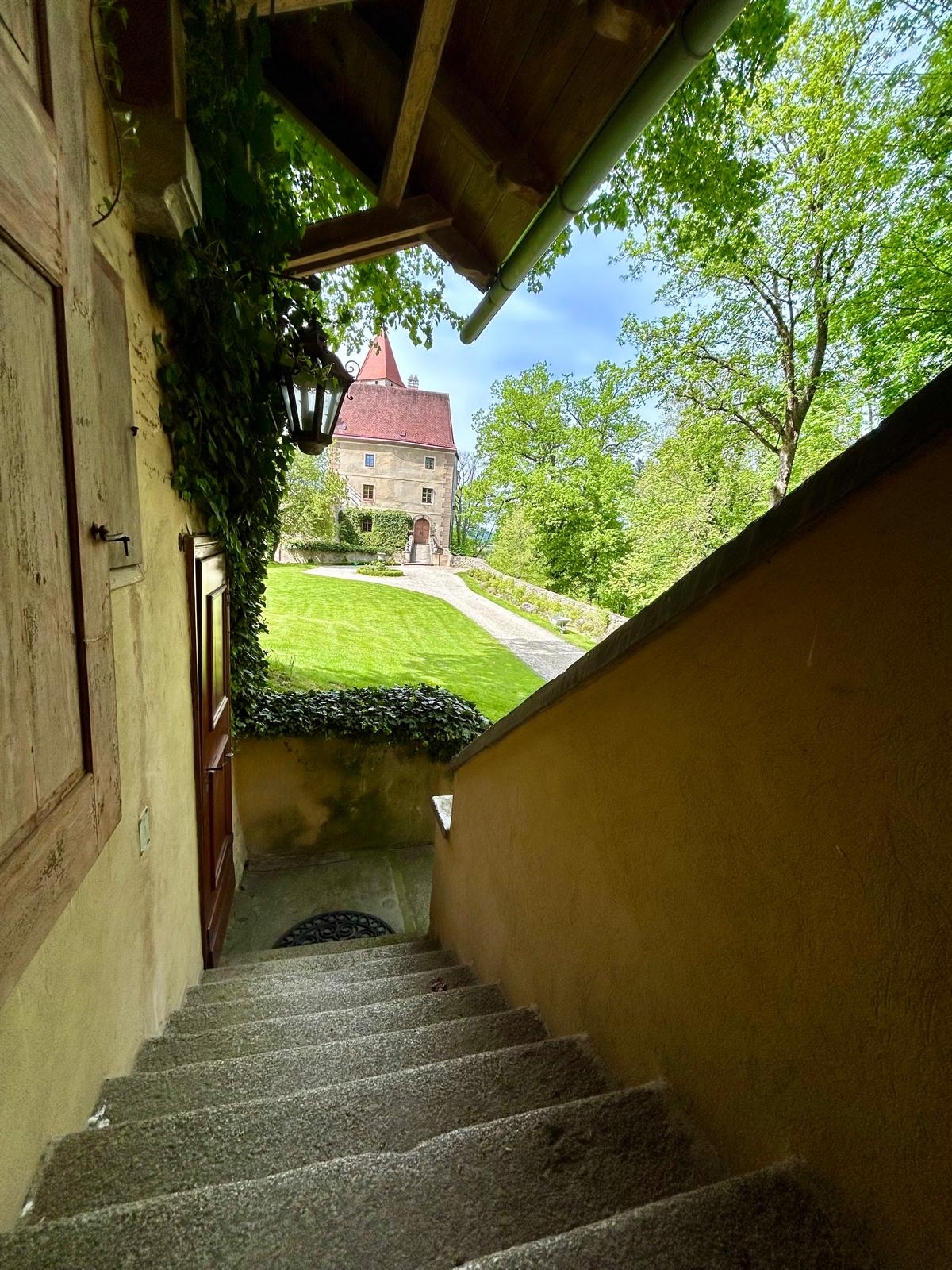 Das historische Vorschloss ist zur Gänze zu mieten und bietet sechs Personen Platz. Im grünen Zimmer mit Blick auf die Burg Rastenberg schlafen Sie in einem Queensize Bett und haben ein en-suite Bad. Das gelbe Zimmer beherbergt zwei Einzelbetten, das rote Zimmer ein Queensize Bett und im gemütlichen Salon befindet sich ein Ausziehsofa. Ein großes modernes Bad bietet alle Annehmlichkeiten.